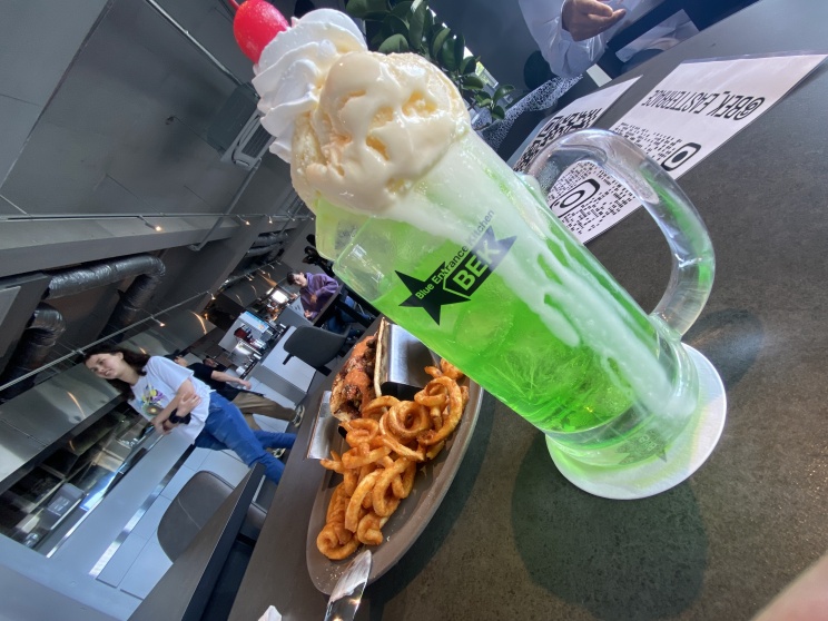 大きなジョッキにそびえ立つメロンソーダ!
